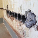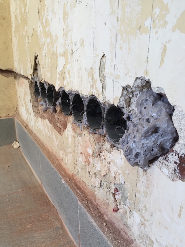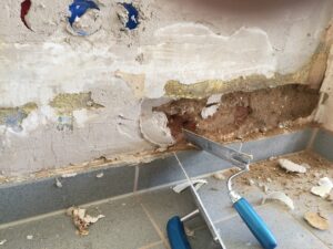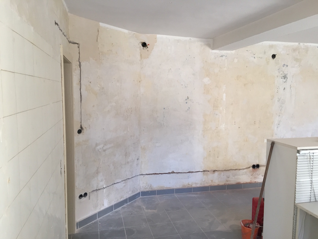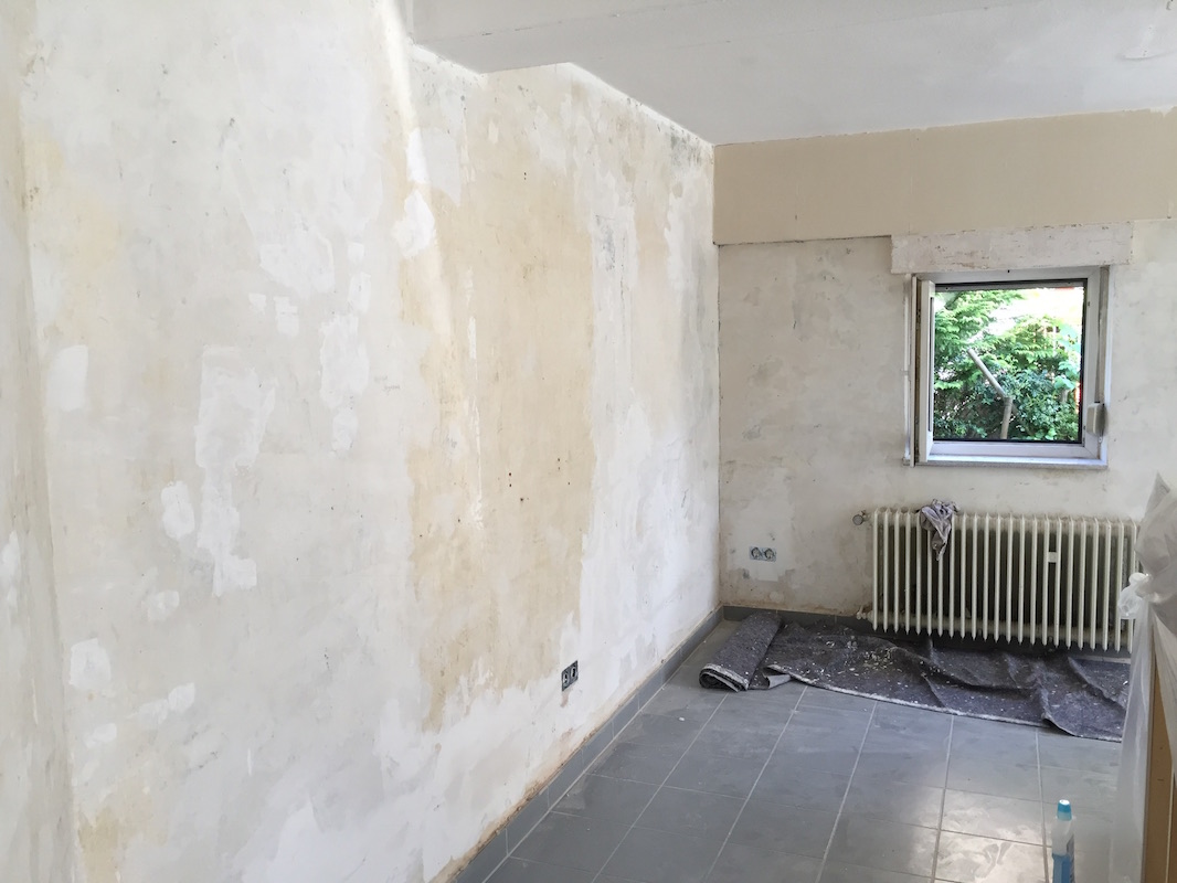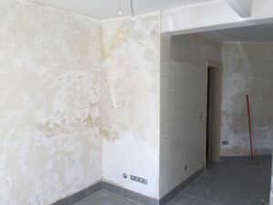 Wegen aufsteigendem Wasser sind alle unsere (tragenden) Mauern feucht. Die Folge: Putz und Tapete kommt von den Wänden. Und früher oder später fängt es auch an zu schimmeln. Dank der Firma ISOTEC und einer „Horizontalsperre“ konnten wir – zumindest für die akut betroffenen Wände – dem aber entgegenwirken.