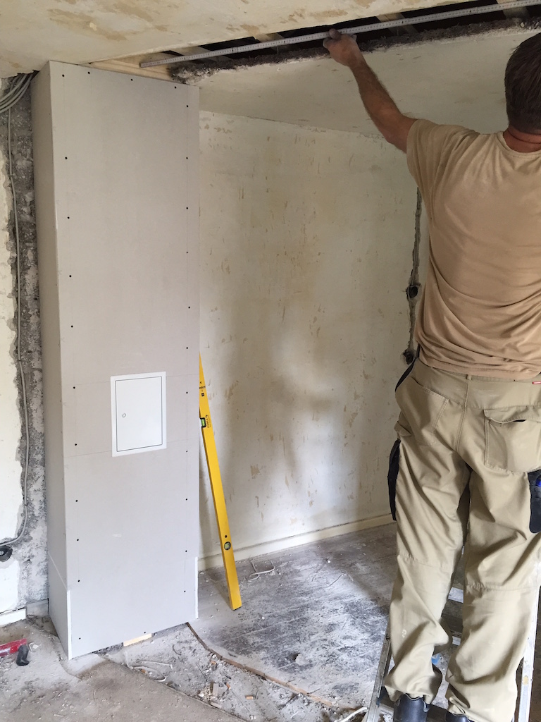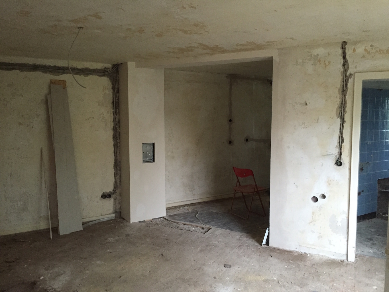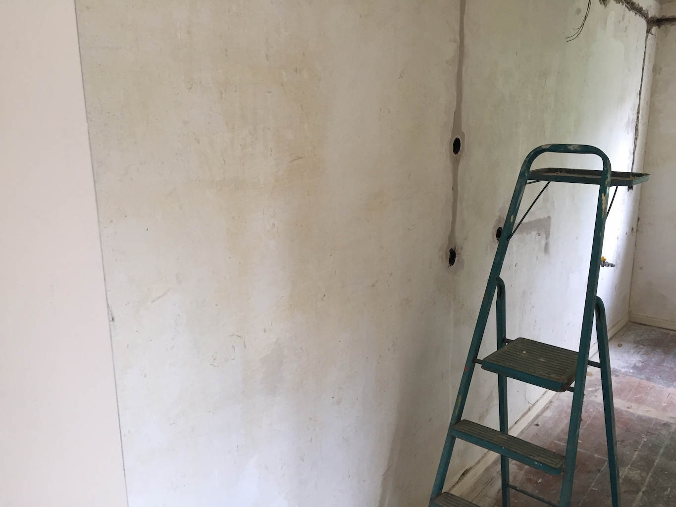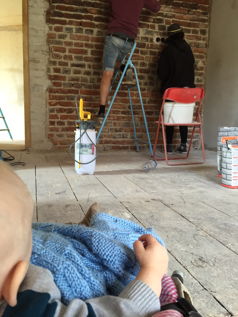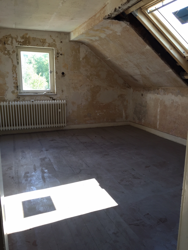 Heute wurden viele Baustellen weitergeführt, nachbearbeitet, beendet. Das zweite Dachfenster wurde eingebaut, die Durchgänge im Wohnbereich verputzt, sowie die Treppe im Flur vom Teppich befreit.