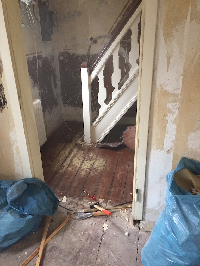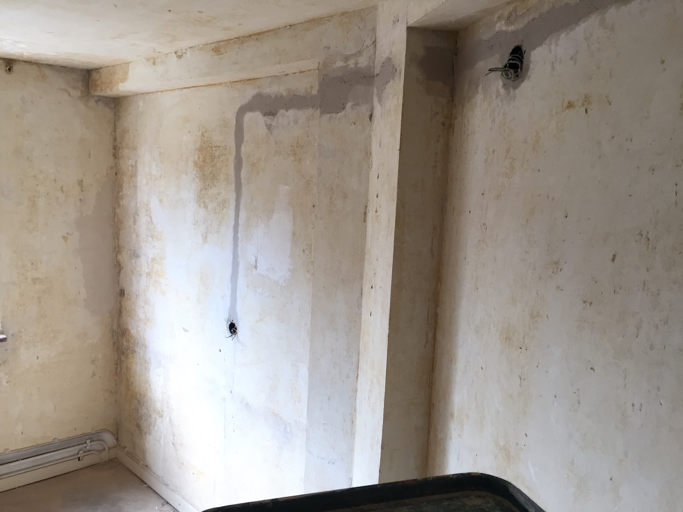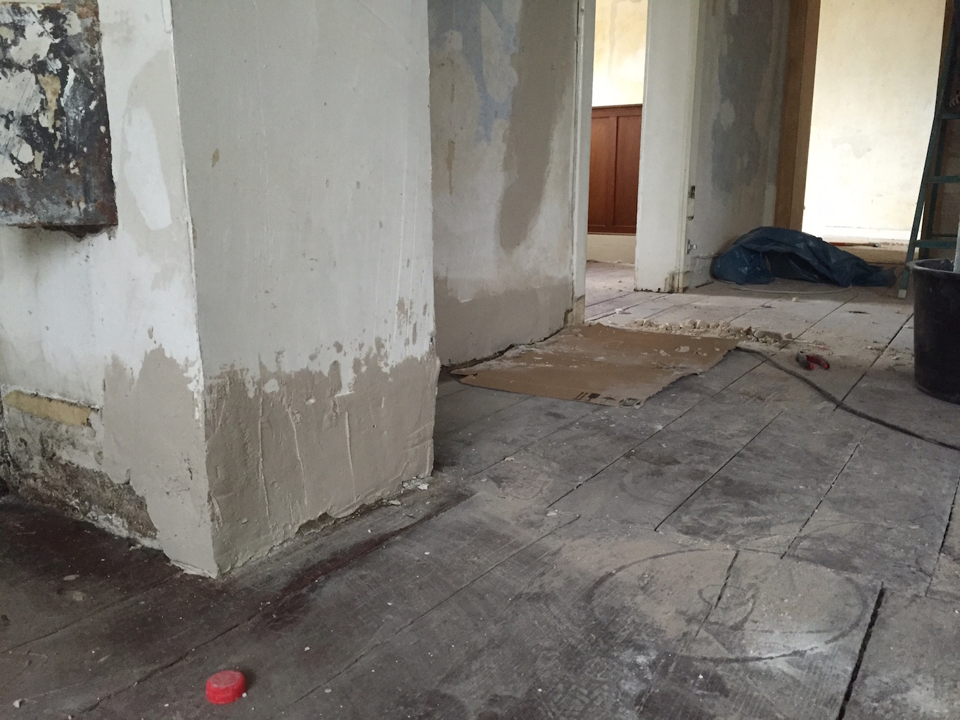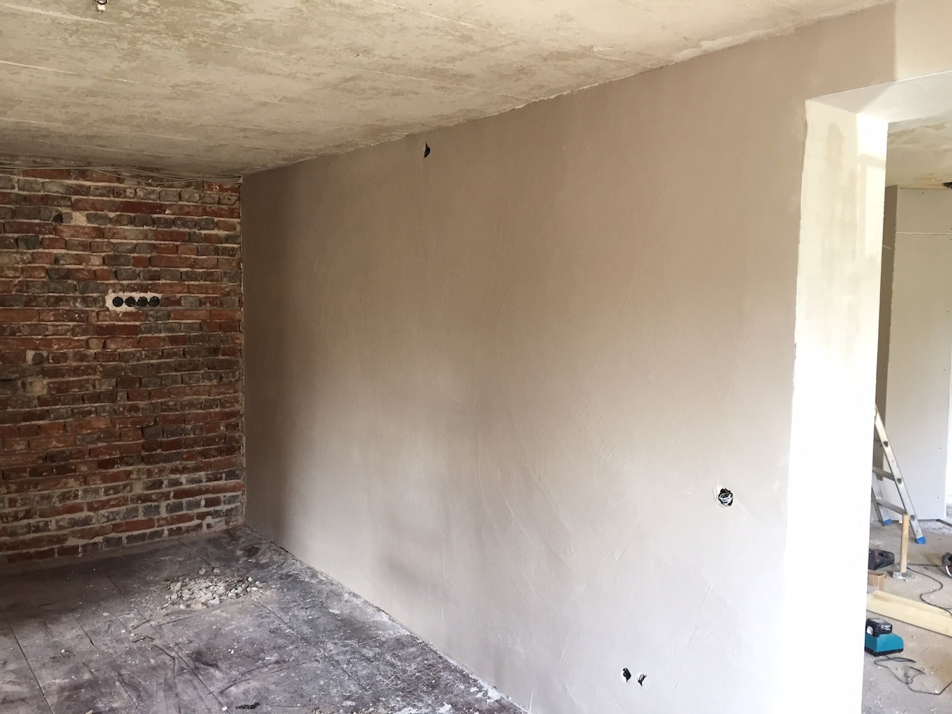Heute wurden viele Baustellen weitergeführt, nachbearbeitet, beendet. Das zweite Dachfenster wurde eingebaut, die Durchgänge im Wohnbereich verputzt, sowie die Treppe im Flur vom Teppich befreit.
