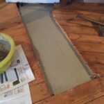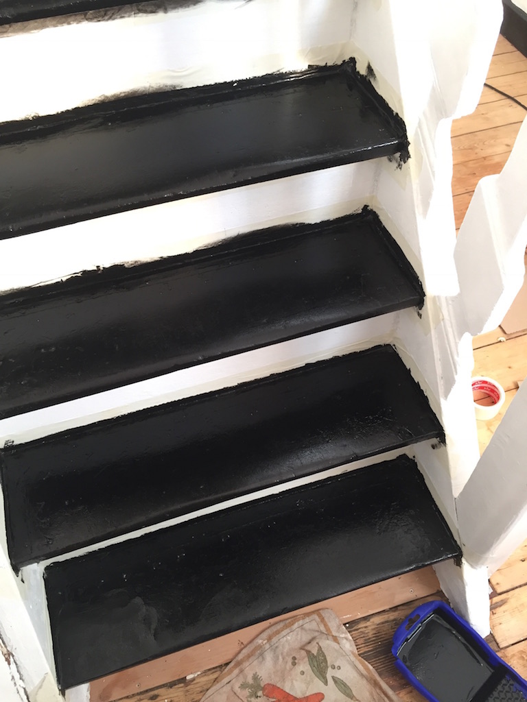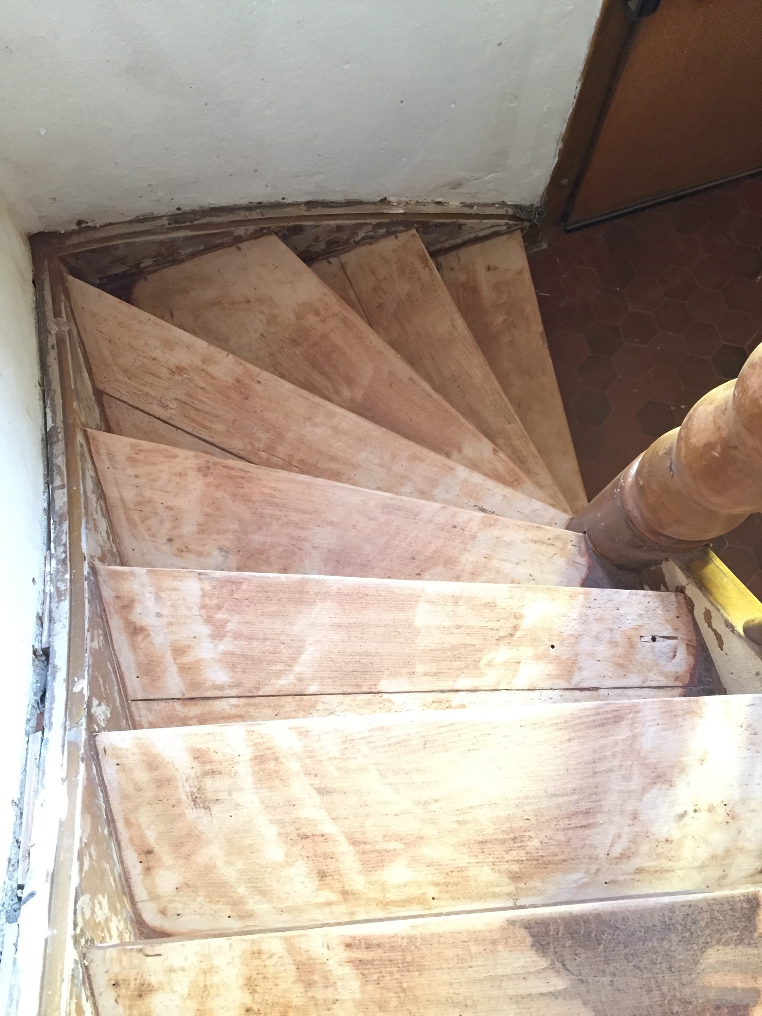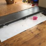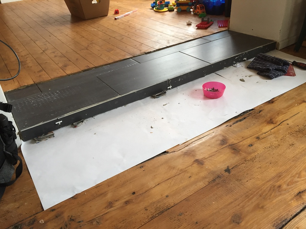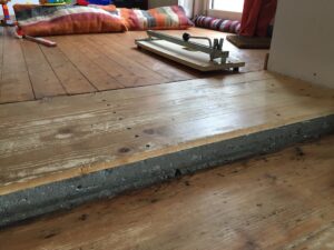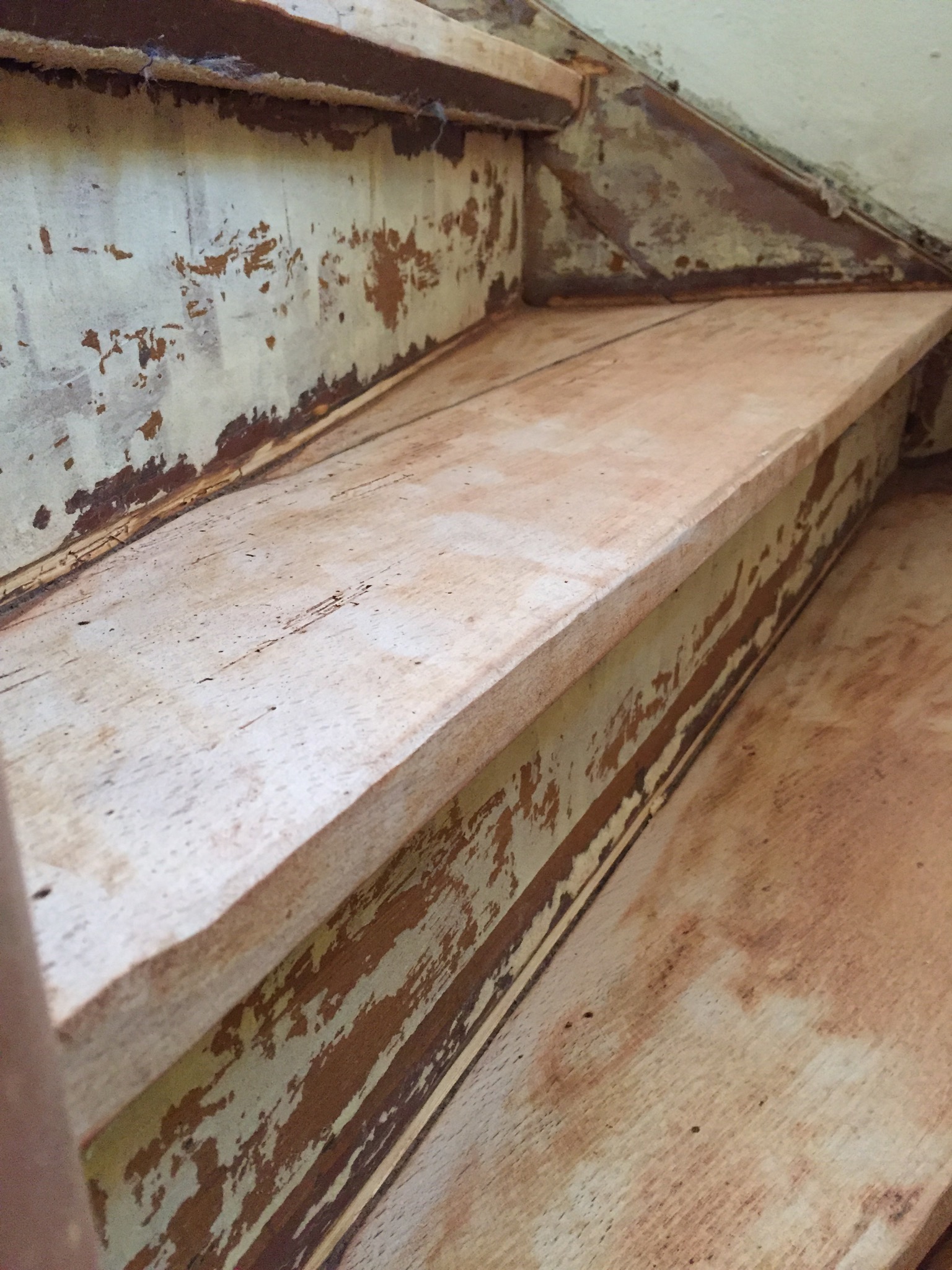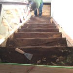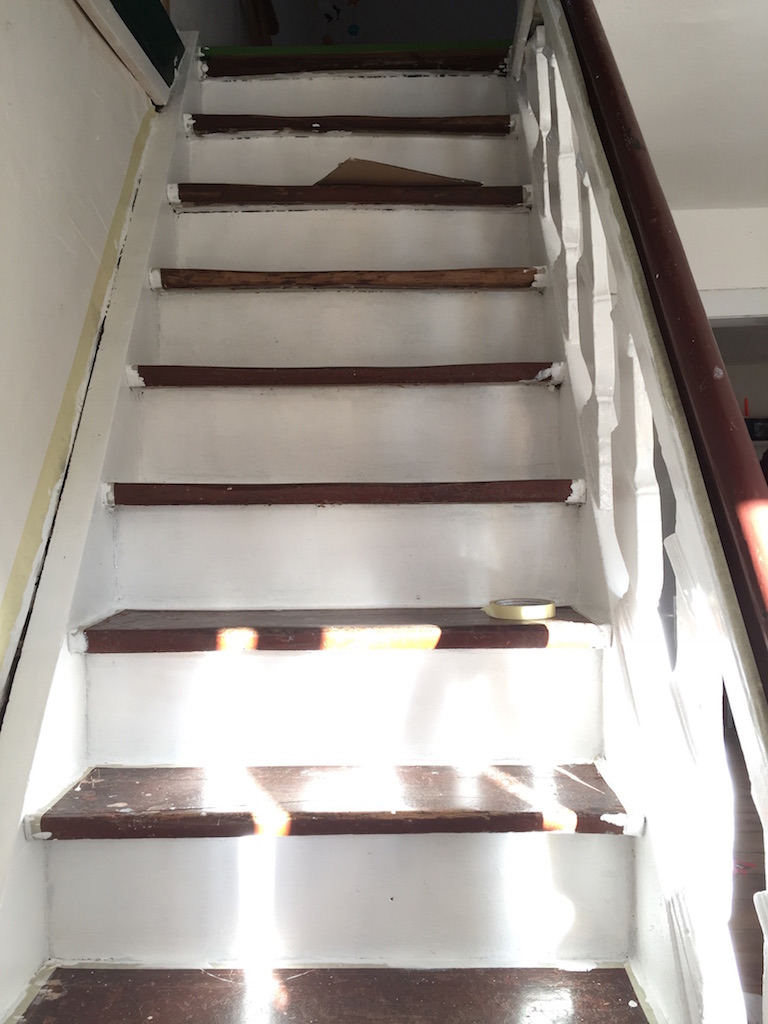 Bevor der Sommer gänzlich zur neige geht, nehmen wir uns nochmal den bereits vorgeschliffenen Aufgang vor: „Unschleifbare“ Ecken ausbessern, streichen, schleifen, ölen, leisten.