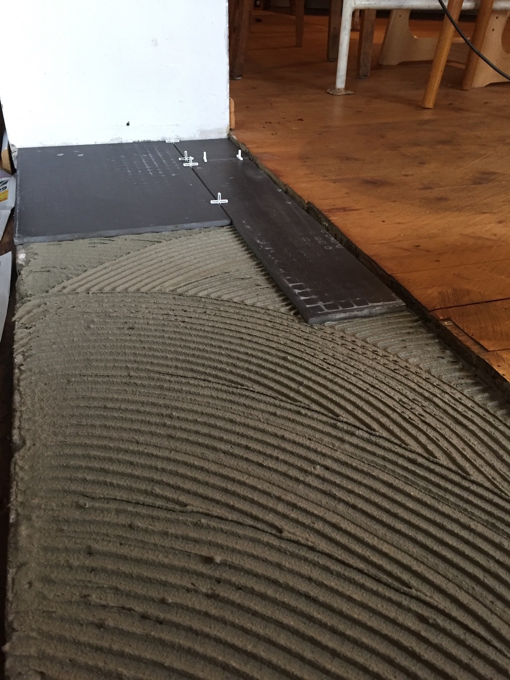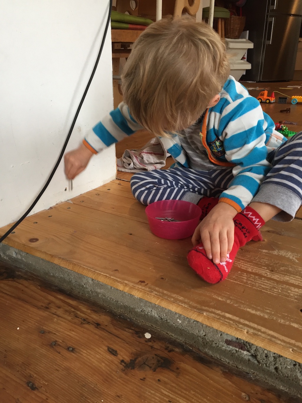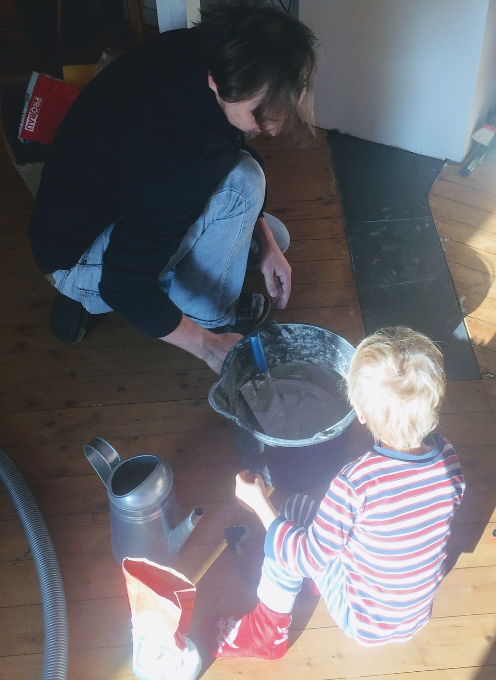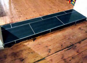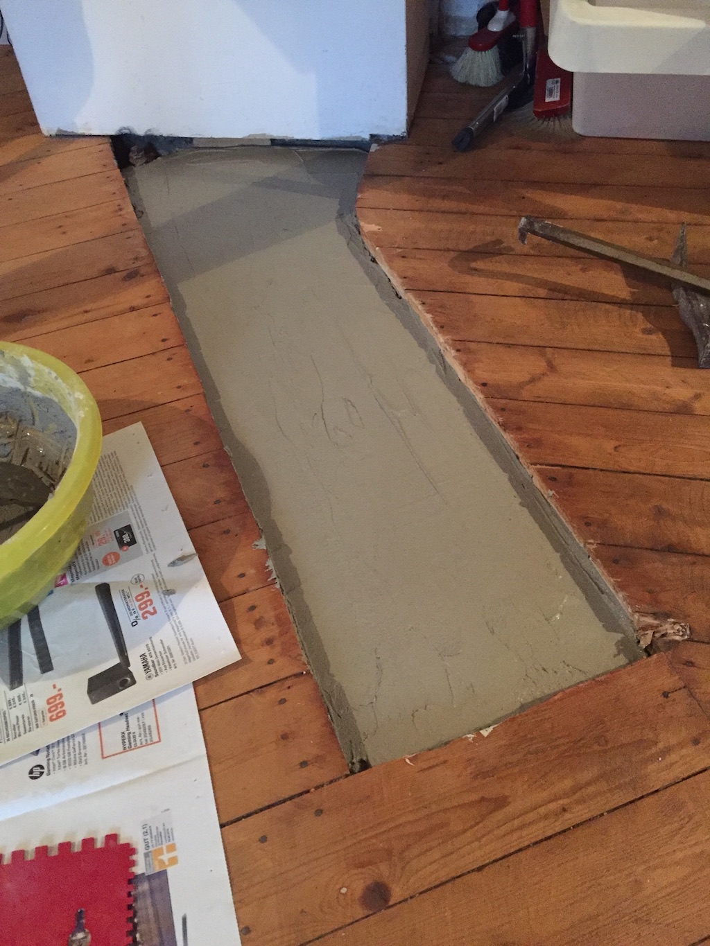 Bevor der Sommer gänzlich zur neige geht, nehmen wir uns nochmal den bereits vorgeschliffenen Aufgang vor: „Unschleifbare“ Ecken ausbessern, streichen, schleifen, ölen, leisten.